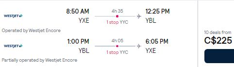 This is the first time there has ever been cheaper flights between Saskatoon and Campbell River (YBL).