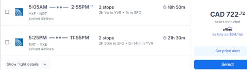 United Airlines and Air Canada have dropped the price of their flights from Saskatoon to Tokyo, Japan down to $722 CAD roundtrip including taxes.
